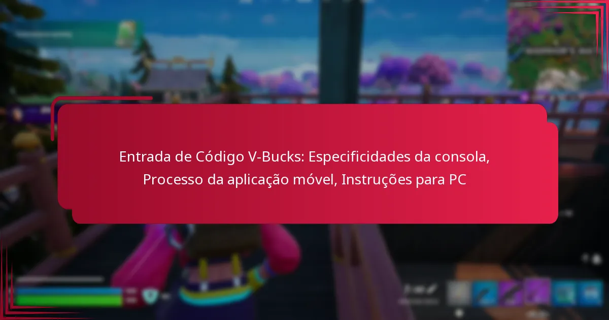 Entrada de Código V-Bucks: Especificidades da consola, Processo da aplicação móvel, Instruções para PC
